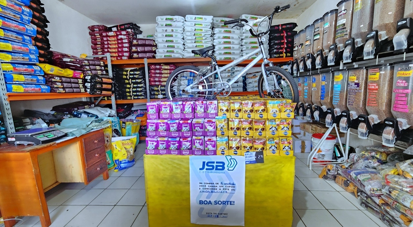 A Rações PET anuncia uma promoção imperdível para seus clientes: a oportunidade de ganhar uma bicicleta novinha! O sorteio será realizado no dia 9 de agosto e está aberto a todos que adquirirem a partir de 6 unidades dos produtos da fábrica JSB.
