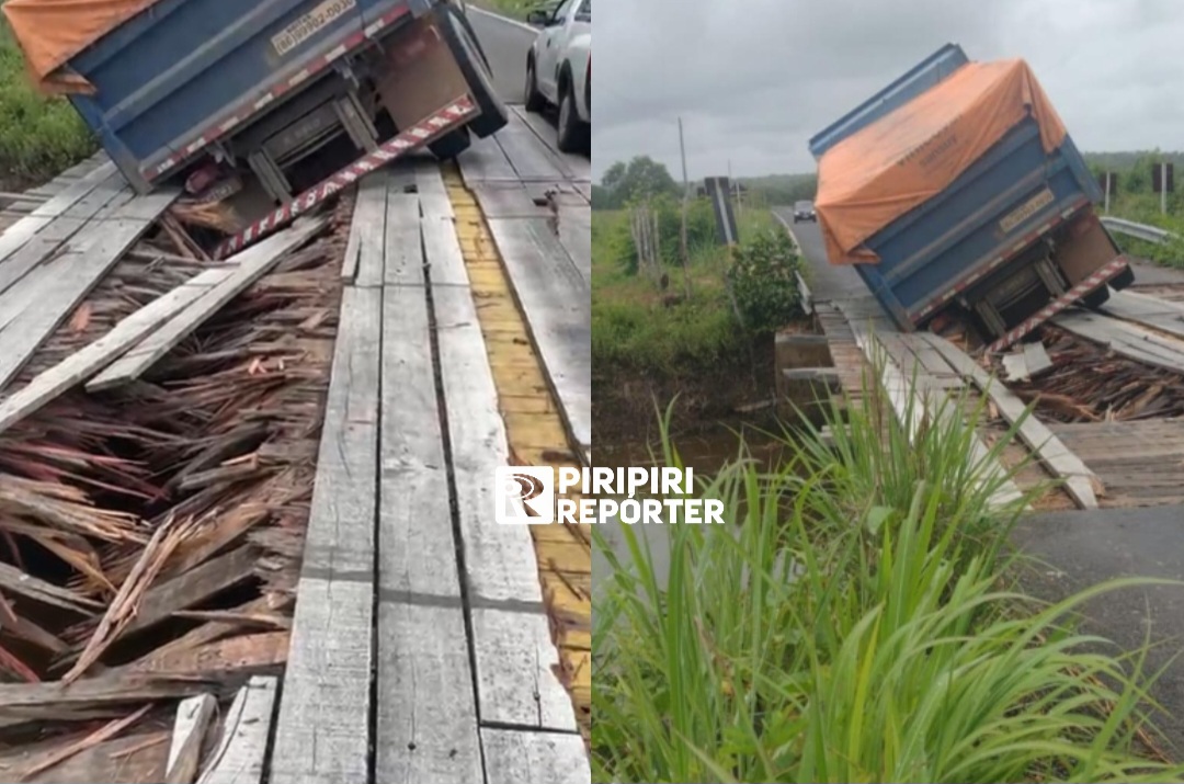 De acordo com as informações apuradas, uma das rodas do caminhão afundou no assoalho de uma ponte de madeira, após a estrutura não suportou o peso do veículo carregado. Com o impacto, as tábuas da ponte quebraram, fazendo com que o caminhão ficasse parcialmente tombado e atravessado sobre a via, como mostram as imagens registradas no local.