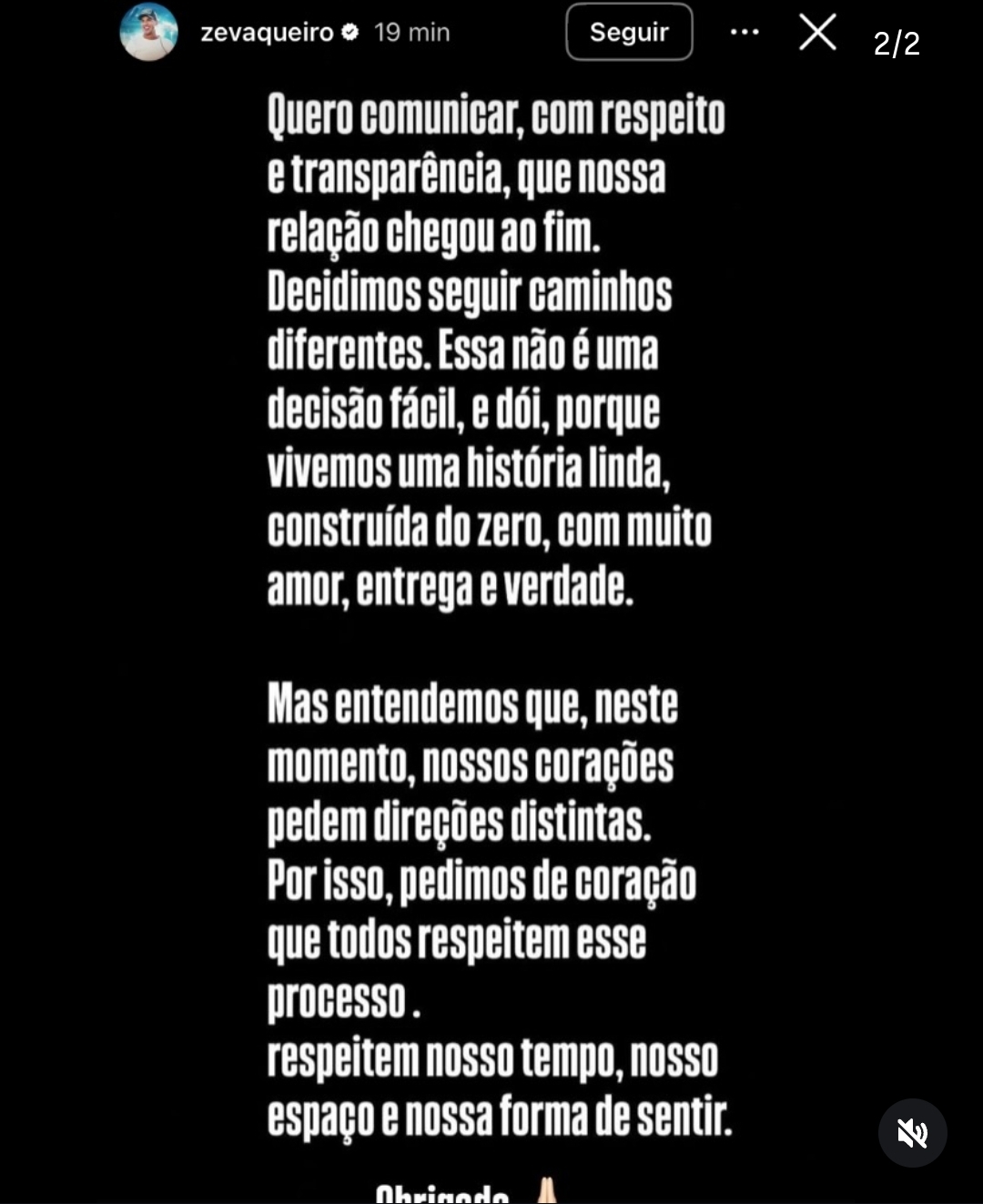 Segundo o comunicado, a decisão de encerrar a relação não foi simples, já que, ao longo dos anos, o casal construiu uma trajetória que Ingra descreve como baseada em parceria e sinceridade. A mesma nota foi publicada nas redes sociais de Zé Vaqueiro poucos minutos depois.