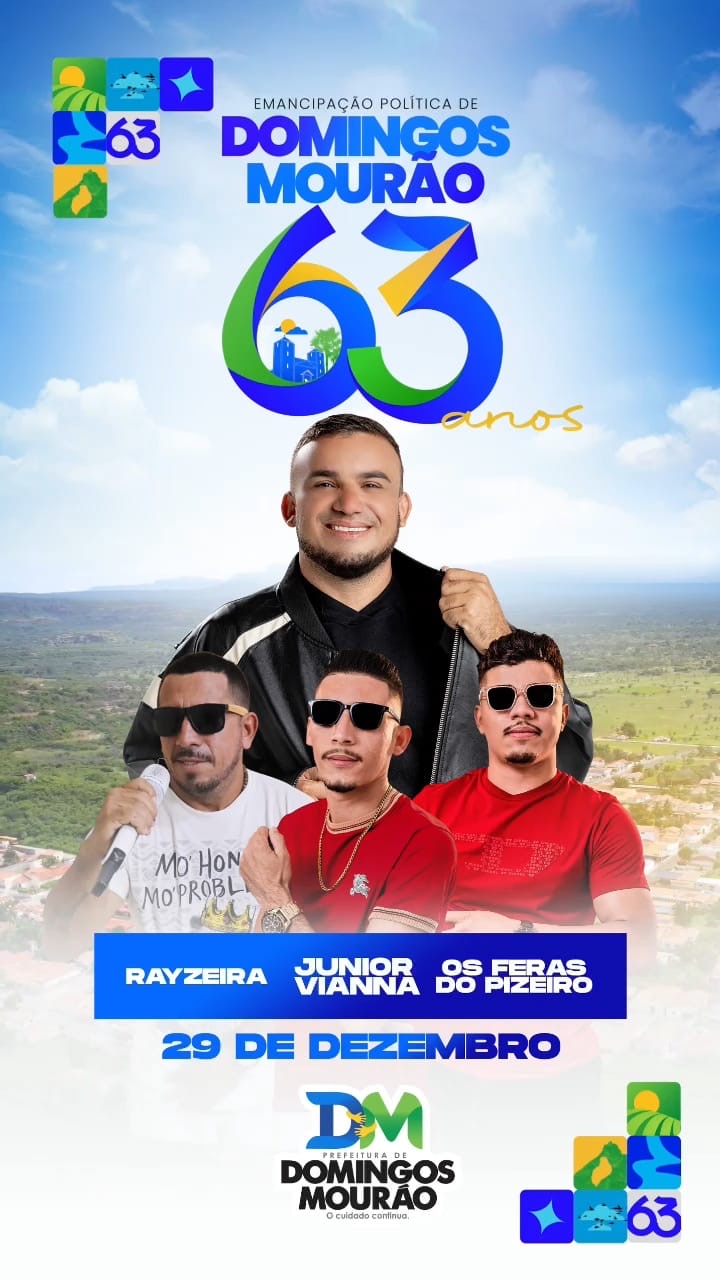 No próximo dia 29 de dezembro, a nossa querida Domingos Mourão completa 63 anos de Emancipação Política, e para celebrar essa data tão especial, estamos preparando uma grande festa para animar, comemorar e festejar ao lado da nossa gente!