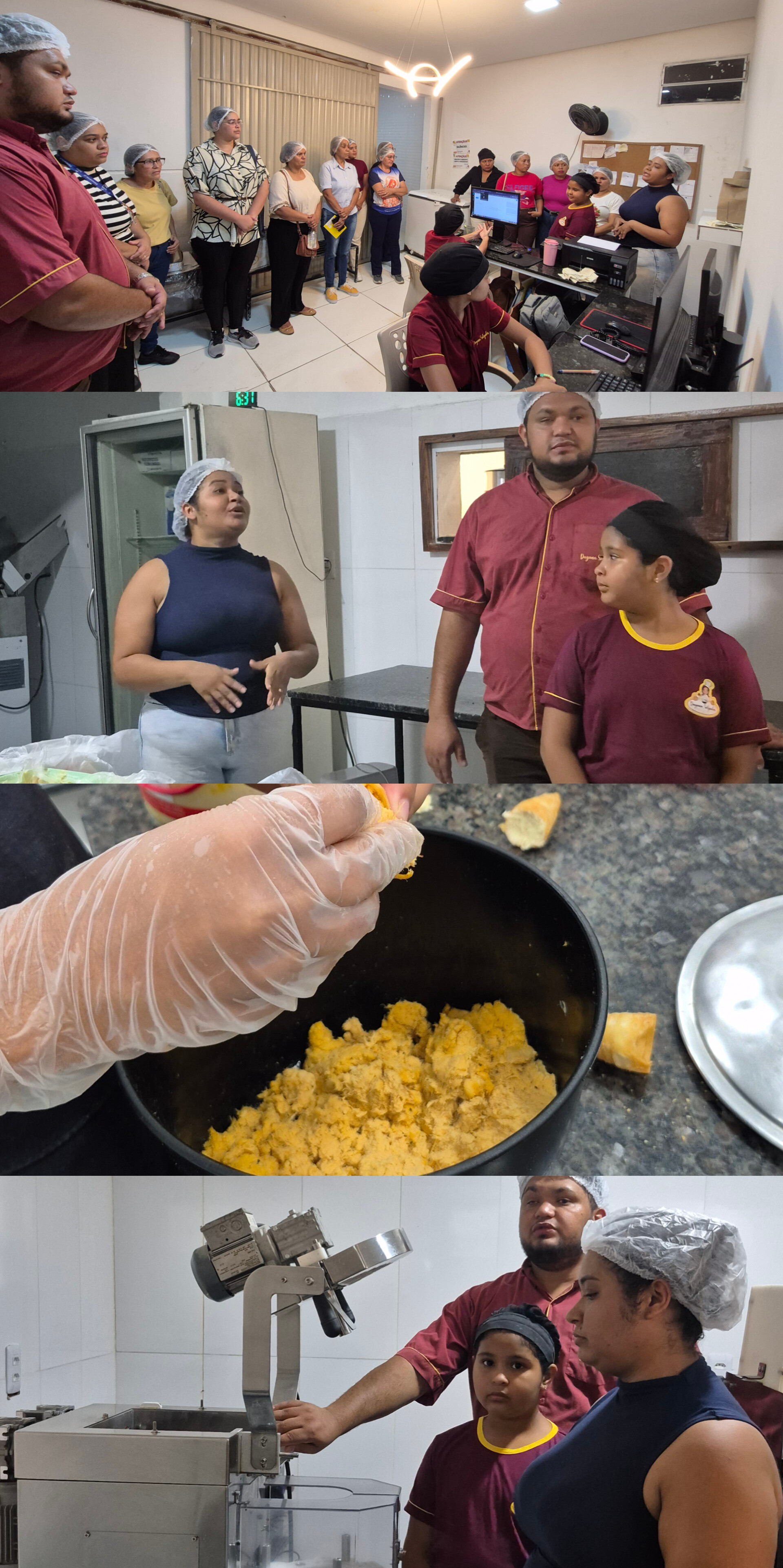 Durante a visita, os estudantes puderam acompanhar de perto todo o processo de fabricação dos salgados, desde o preparo da massa até a finalização dos produtos. Foram apresentados os bastidores da produção de delícias como coxinha, risole, canudinho, minipizza, pastelzinho, bolos e lasanha, entre outros. A fábrica chamou atenção pela estrutura moderna e equipamentos de alta qualidade, que contribuem para a agilidade e padronização dos produtos.