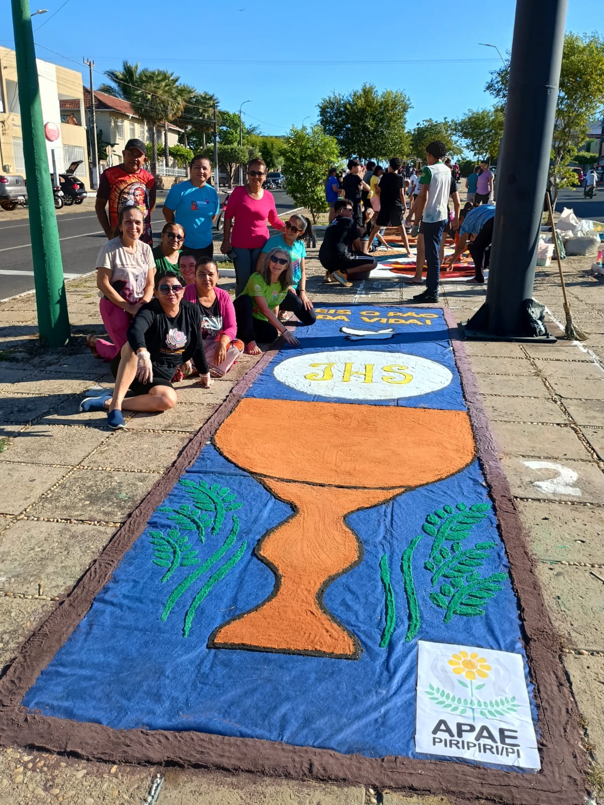 Fieis da Paróquia Nossa Senhora dos Remédios, em Piripiri, encheu de cores e devoção com a confecção de tapetes de serragem para a celebração do Corpus Christi.